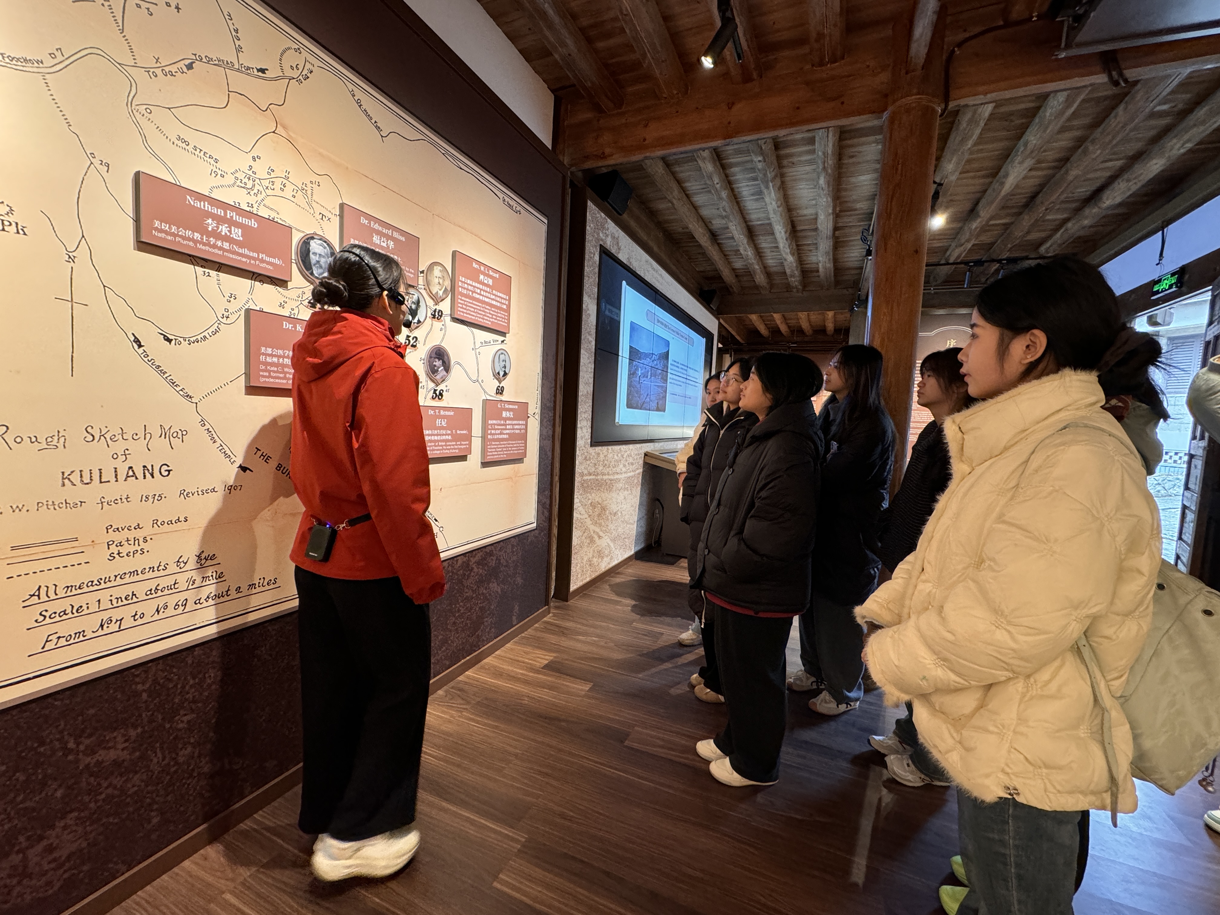 调研过程中,队员们采用“脚步丈量+镜头记录+访谈挖掘”的多元方式,既用相机定格云雾缭绕中错落有致的老建筑群、晨曦穿透枝叶洒落石阶的唯美景致,也主动询问讲解员,打捞藏在建筑背后的鲜活故事。